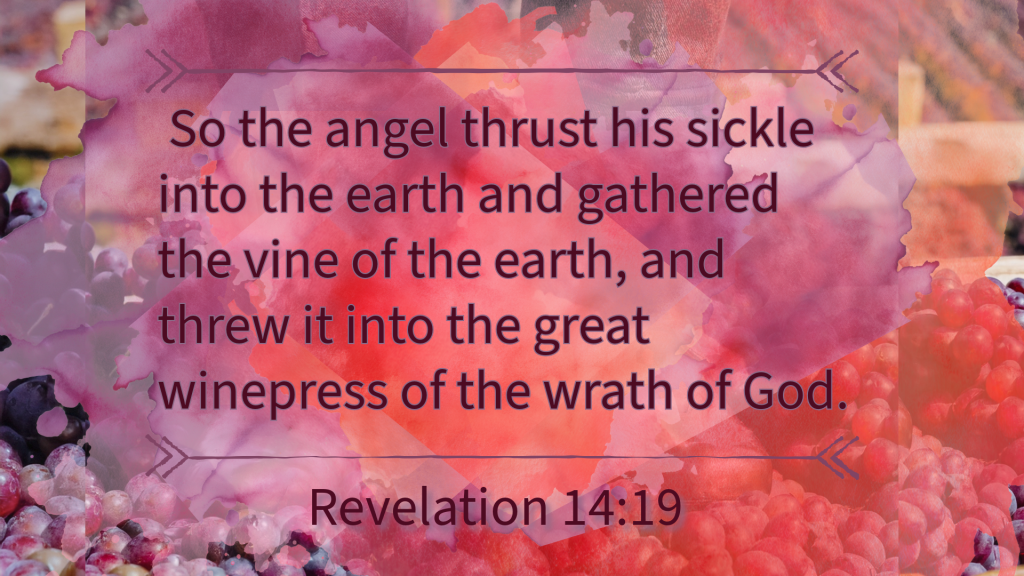 These two sections go together, because when the Lamb of God, King Jesus, returns, He will crush His enemies who are “overripe” in their sin and rebellion.